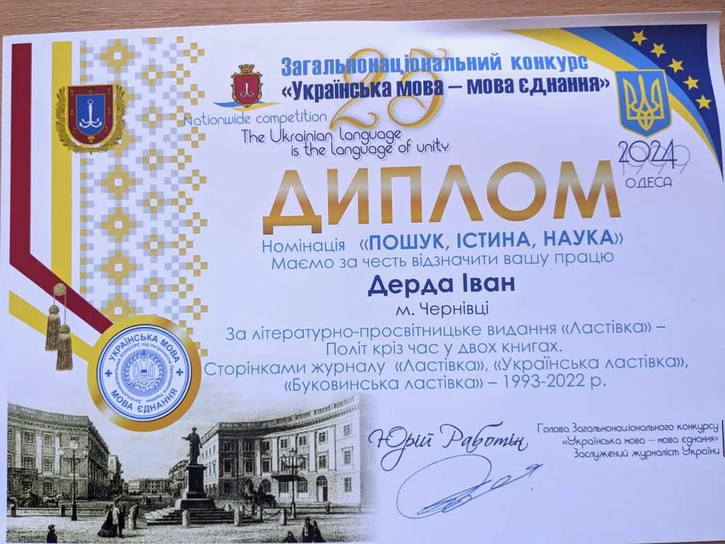 Цьогоріч дипломи отримали викладачі Чернівецького національного університету імені Юрія Федьковича: за підручник «Українська мова» для 6 класу з навчанням румунською мовою закладів загальної середньої освіти – Олена Кульбабська, Тетяна Фонарюк, Анастасія Костіна-Кніжницька; за літературно-просвітницьке видання «Ластівка. Політ крізь час» – Іван Дерда. Також відзнаки та нагороди отримали Василь Джуран, Володимир Бобер, Леонтина Топало, Василь Тітов, Анна Довгопола.