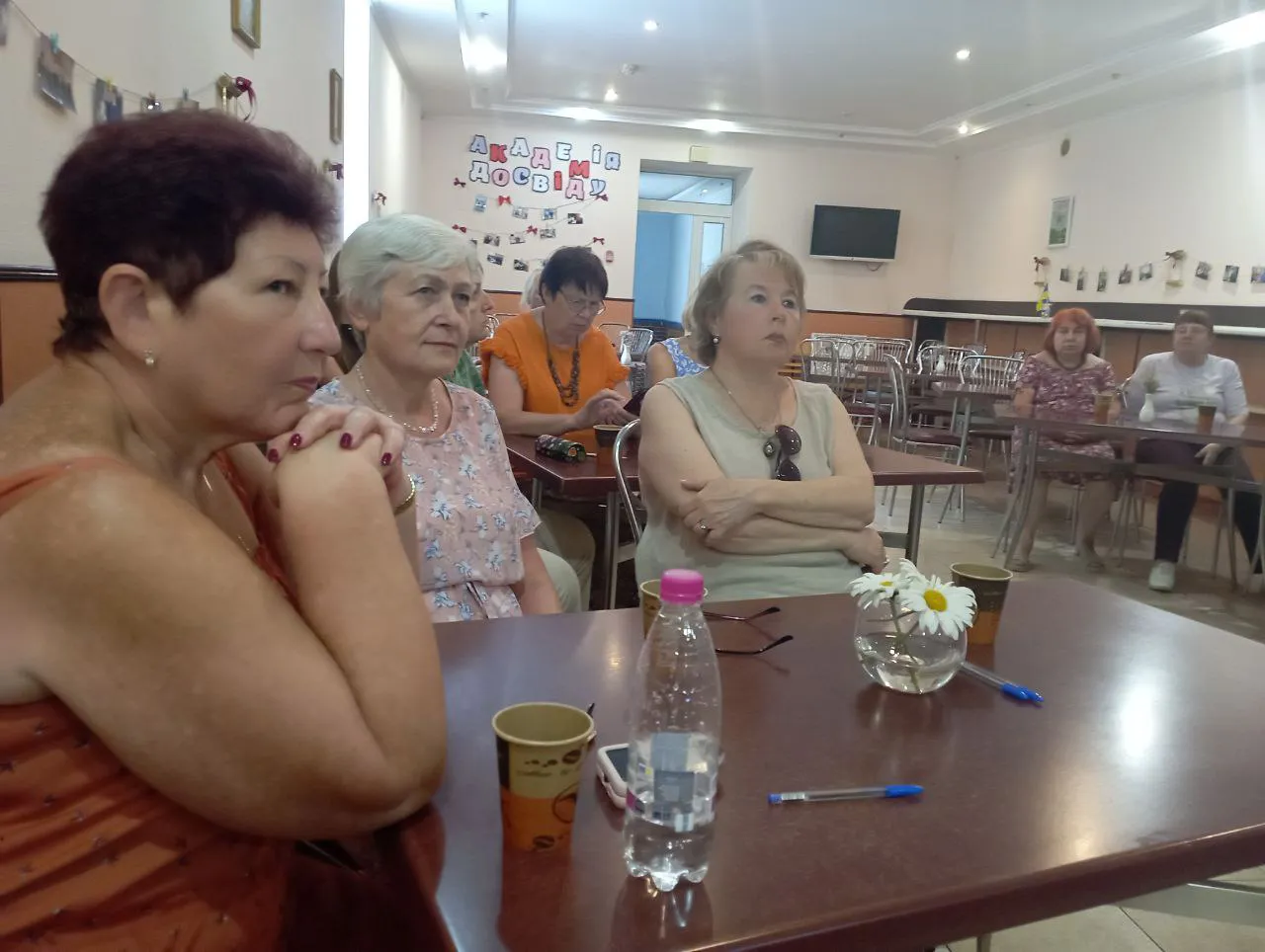 Під час зустрічі обговорювалися ключові чинники активного довголіття – збалансоване харчування, регулярна фізична активність, тренування мозку та психологічне здоров’я, соціальні зв’язки та філософія життя. Учасники не лише дізналися про науково обґрунтовані підходи до збереження здоров’я, а й практично визначили свій біологічний вік, порівняли його з паспортним, проаналізували власні звички та поділитися особистим досвідом.