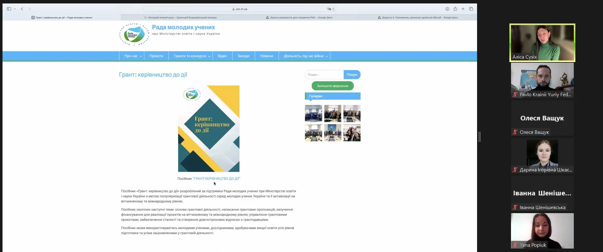 Голова РМУ при МОН, докторка юридичних наук, професорка, професорка кафедри криміналістики Національного університету «Одеська юридична академія» Олеся Ващук наголосила на важливості продовжувати наукові дослідження молодими вченими та розширювати свої можливості, використовуючи різноманітні форми діяльності які пропонує РМУ при МОН. Заступниця голови Ради, кандидатка педагогічних наук, старша наукова співробітниця Інституту цифровізації освіти Національної академії педагогічних наук України Аліса Сухіх детально ознайомила присутніх із проєктами, заходами та активностями які стосуються реалізації грантових проєктів, проведення міжнародних конференцій, просвітницьких заходів тощо.
