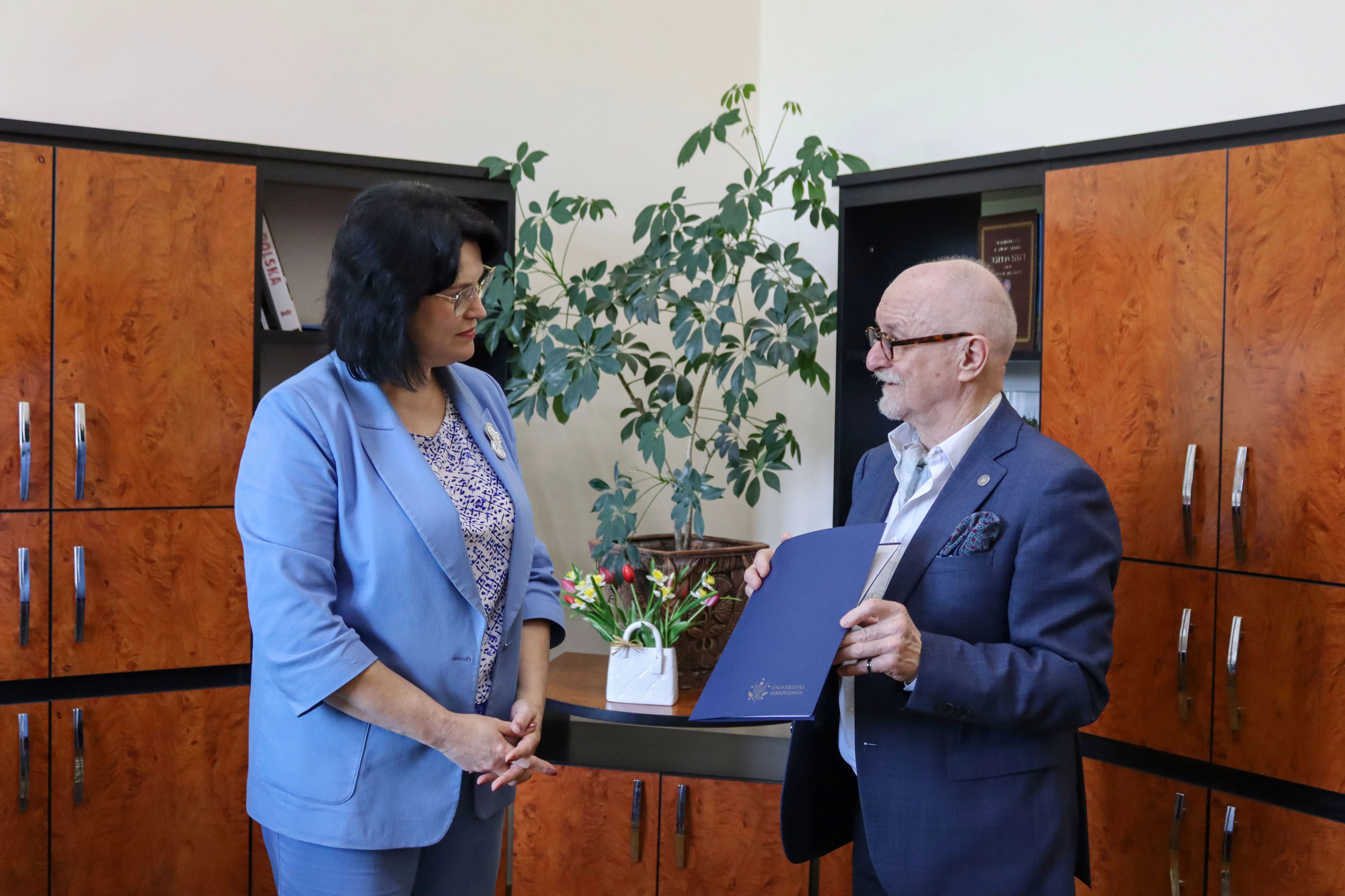 Особливо урочистим був той момент, коли Почесний доктор Ян Маліцький передав ректору нашого університету Руслану Білоскурському лист подяки від ректора Варшавського університету Алойзи Новака, в якому йдеться про підтримку цим нашим багатолітнім партнером організації приїзду студентів, аспірантів і викладачів, про реалізацію спільних європейських проєктів, стипендіальних програм і літніх шкіл.