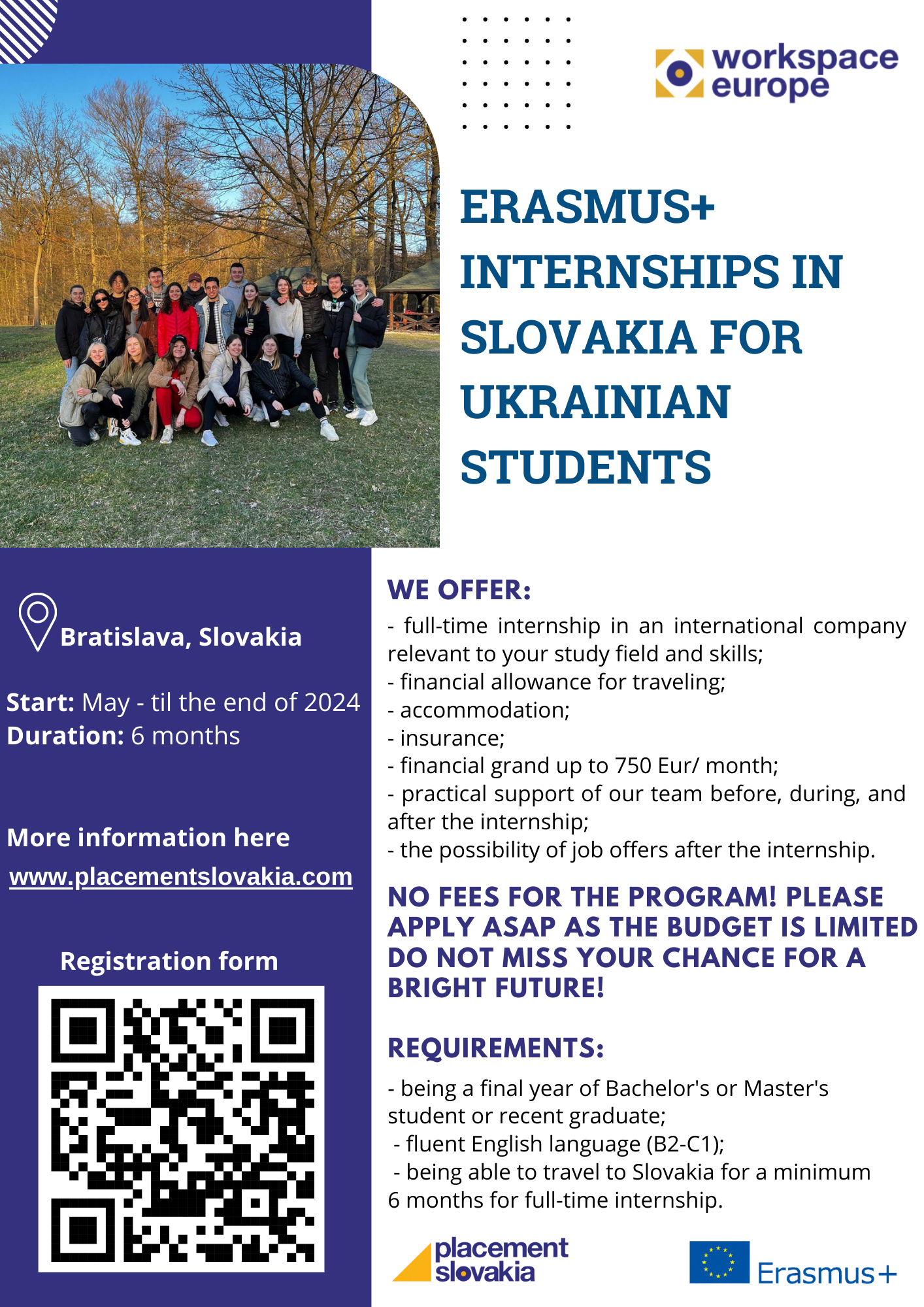 In 2022 within KA131 Erasmus project a special opportunity was created for students of Ukrainian Universities to come to Slovakia for an EU-supported 6-months Erasmus traineeship in partner companies. Since 2022 WorkSpace Europe has already organized internships for over 40 Ukrainian students. Here you can read their successful stories.