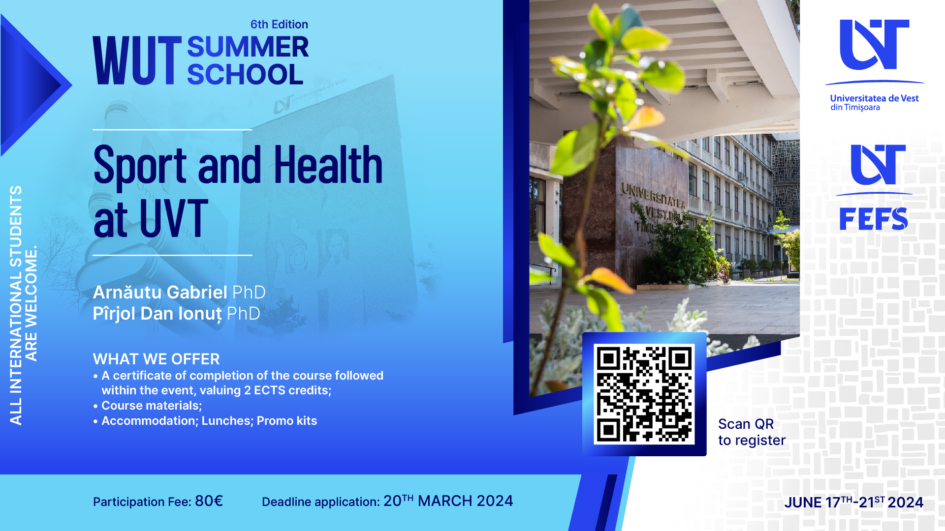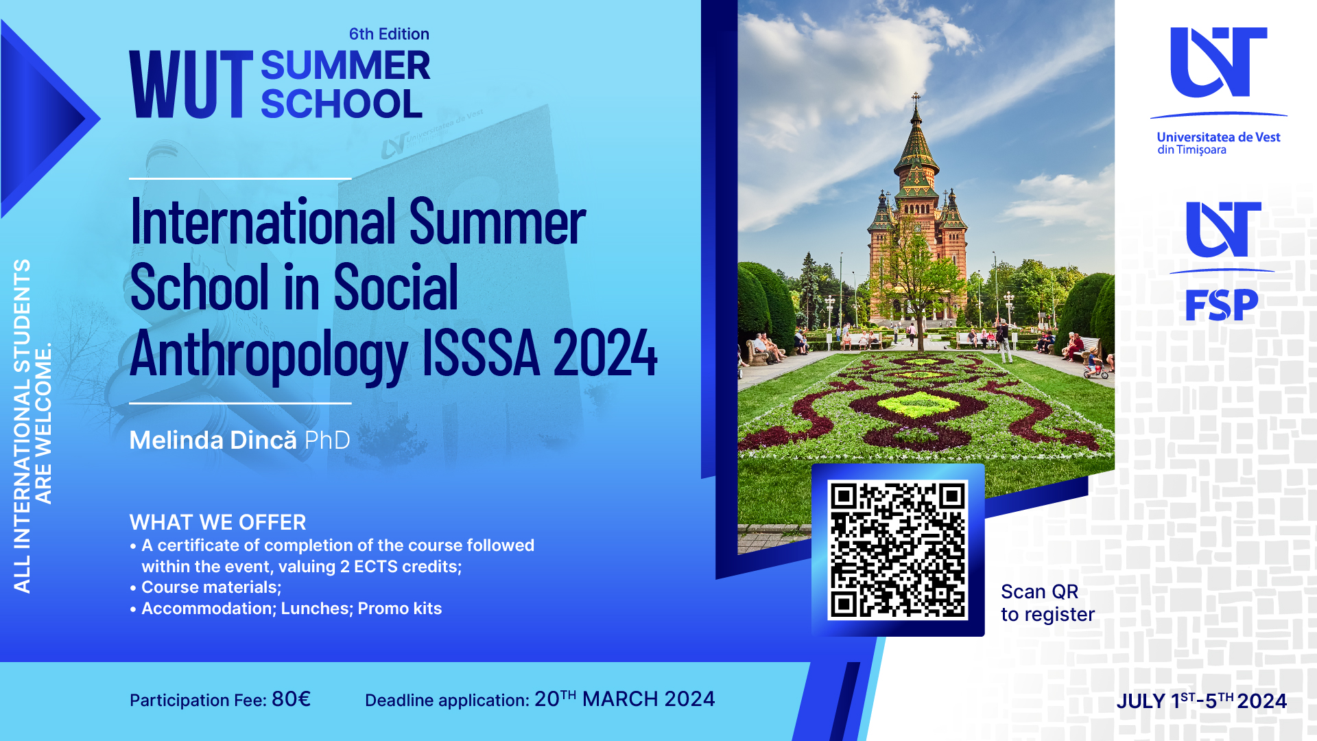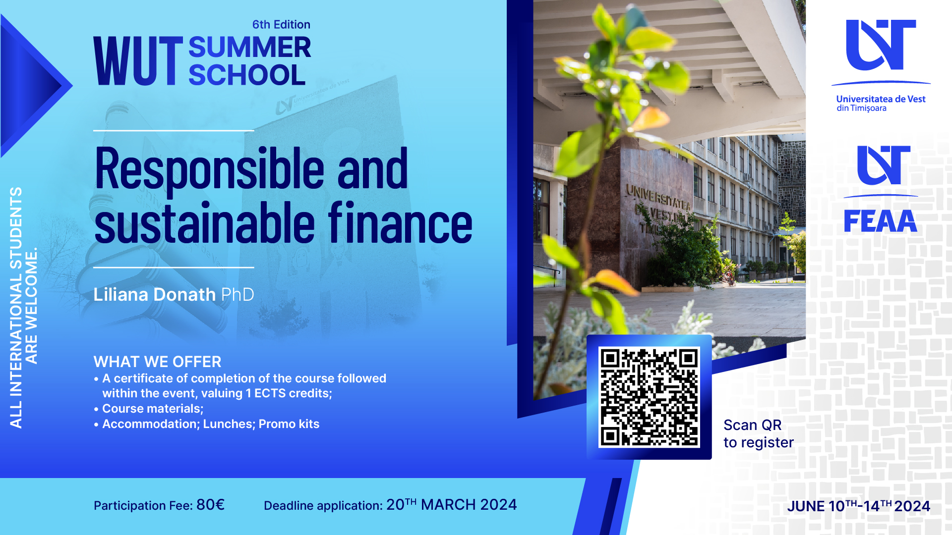 We kindly ask you to disseminate this information among those students who might be interested in joining the 6th edition of the West University of Timișoara Summer School.