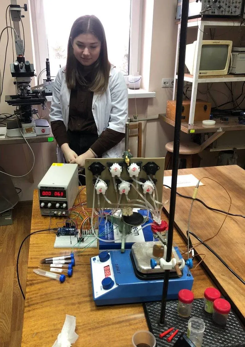 Вже місяць як команда отримала першу частину обладнання (блок живлення, перистальтичні насоси, мікроконтролер та інші витратні матеріали) та здійснює перші випробування під супроводом ментора д.х.н.Халавки Юрія Богдановича, а в реалізації допомагають лаборанти з кафедри комп’ютерних систем та мереж.