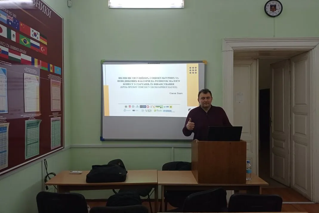 12 квітня на кафедрі фінансів і кредиту відбулася Науковий семінар на тему: Вплив інституційних (соціокультурних) та поведінкових факторів на розвиток малого бізнесу і стартапів, їх фінансування (крізь призму генезису економічної науки).