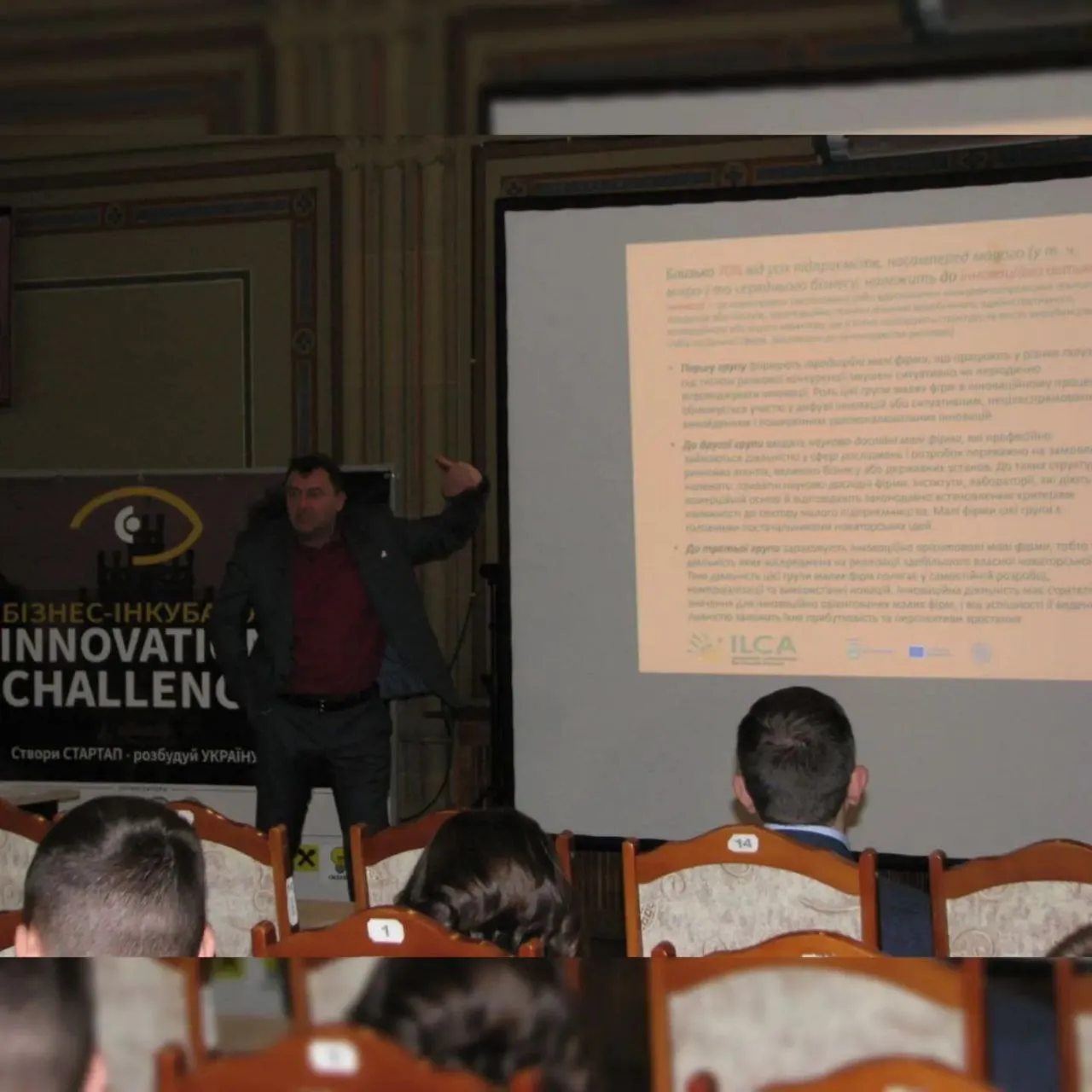 Передував нетворкінгу виступ координатора проекту Бізнес-інкубатор "Innovation challenge" Євгена Ткача (тема: Від бізнес-ідеї до Еко-стартапів: інновації, досягнення, виклики)