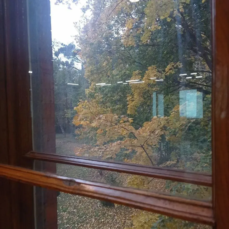 Тим часом за вікном в університетському парку сонячна багряна осінь!🍁